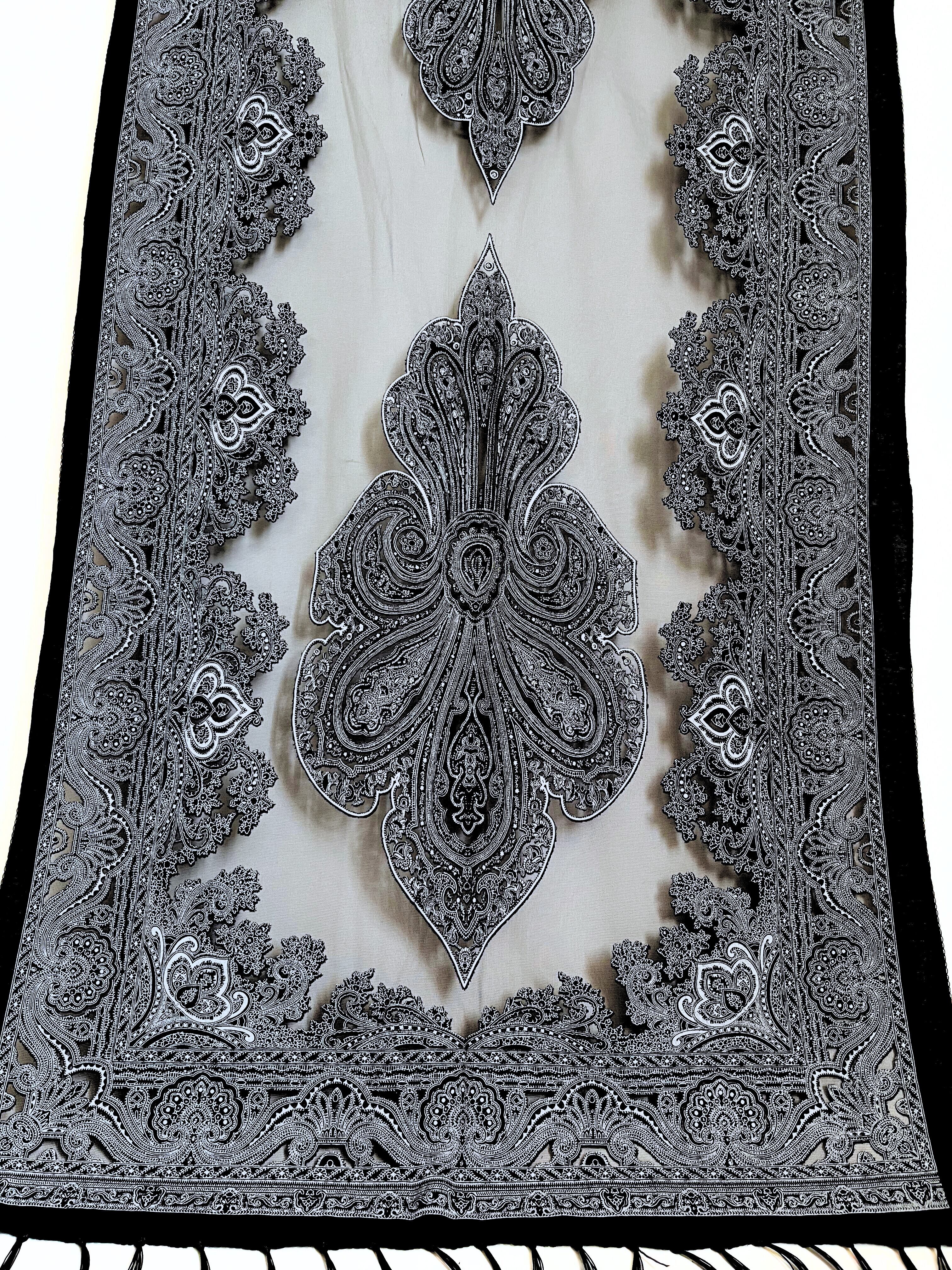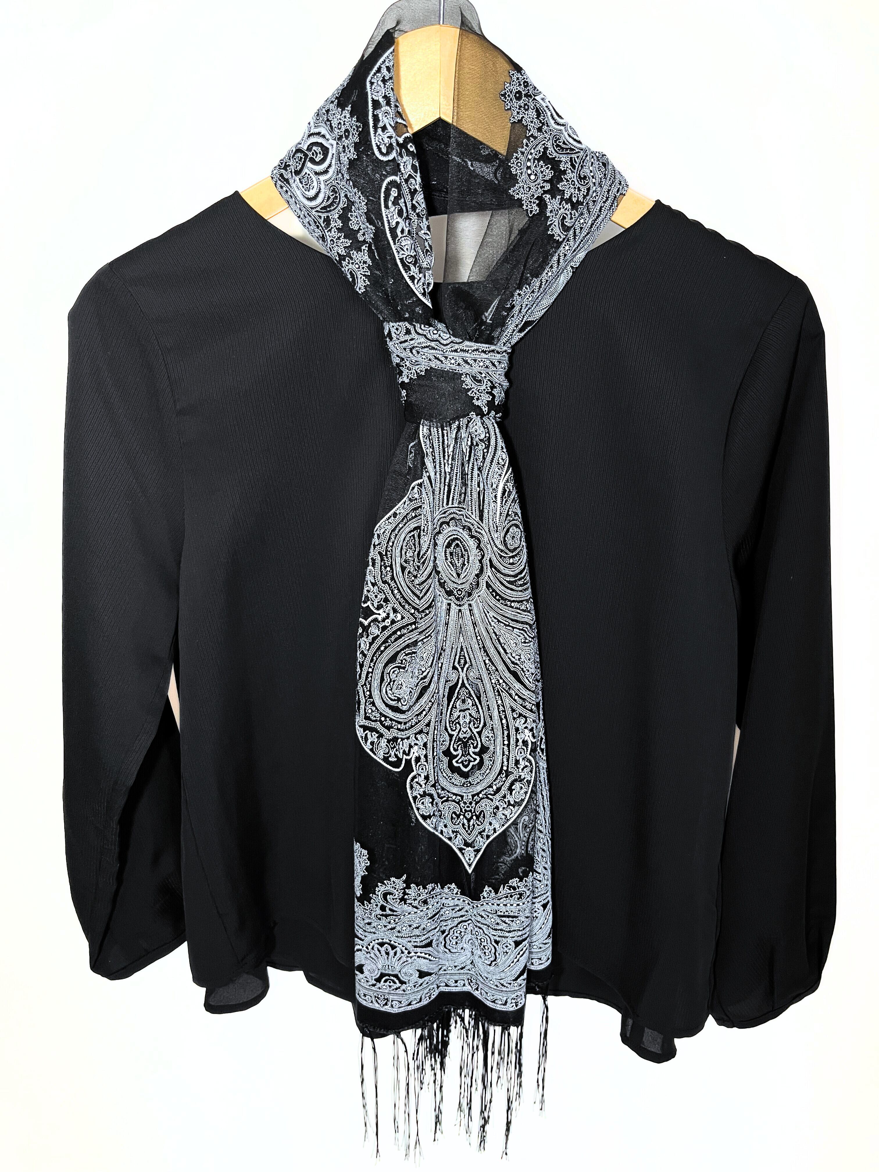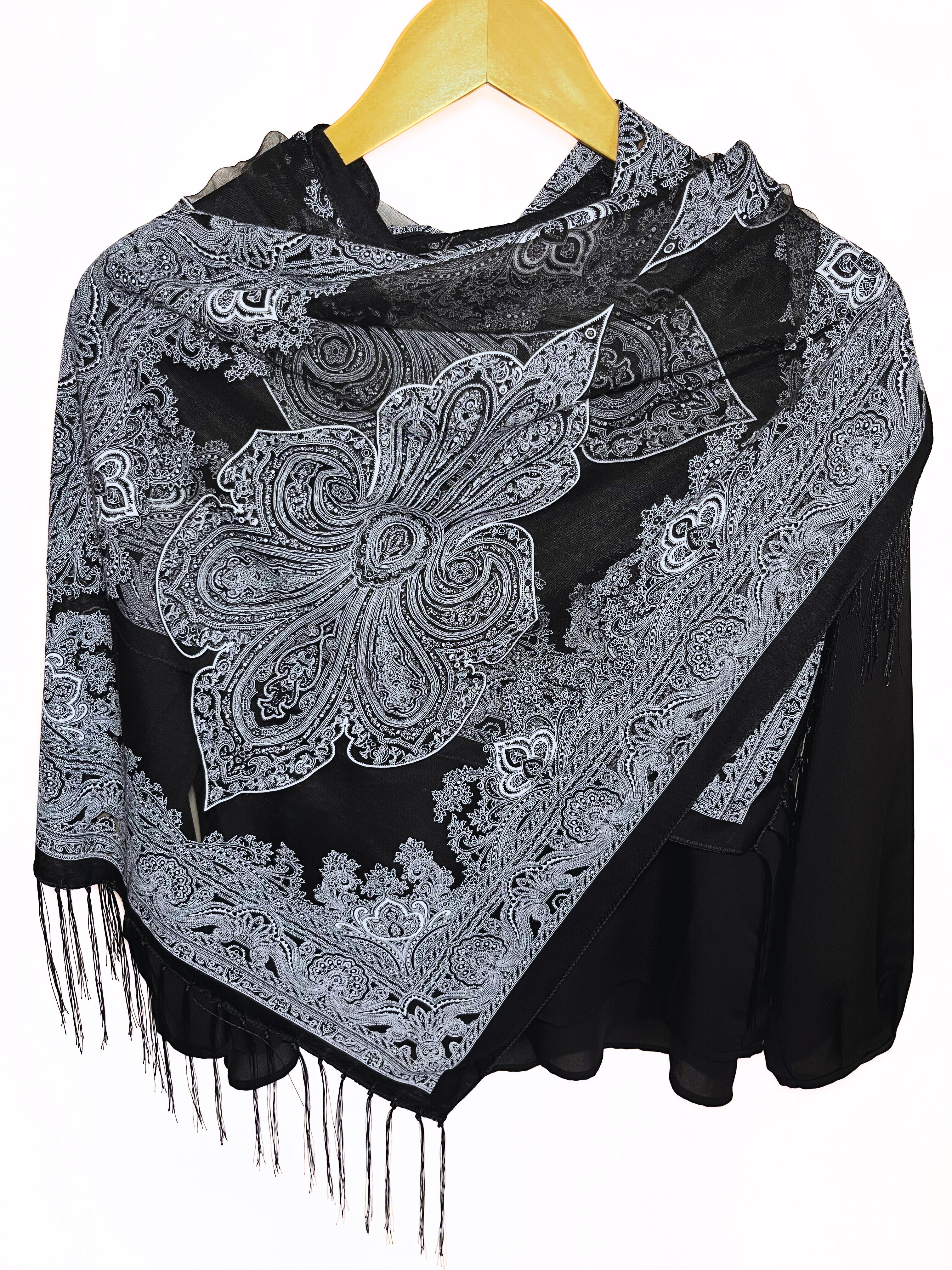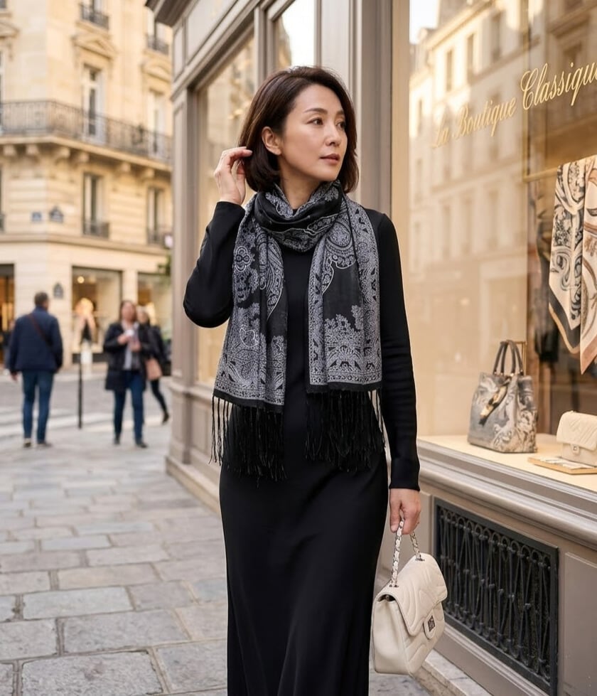 夏は1枚で。冬は厚手の無地ストールと重ね着けしても素敵です。