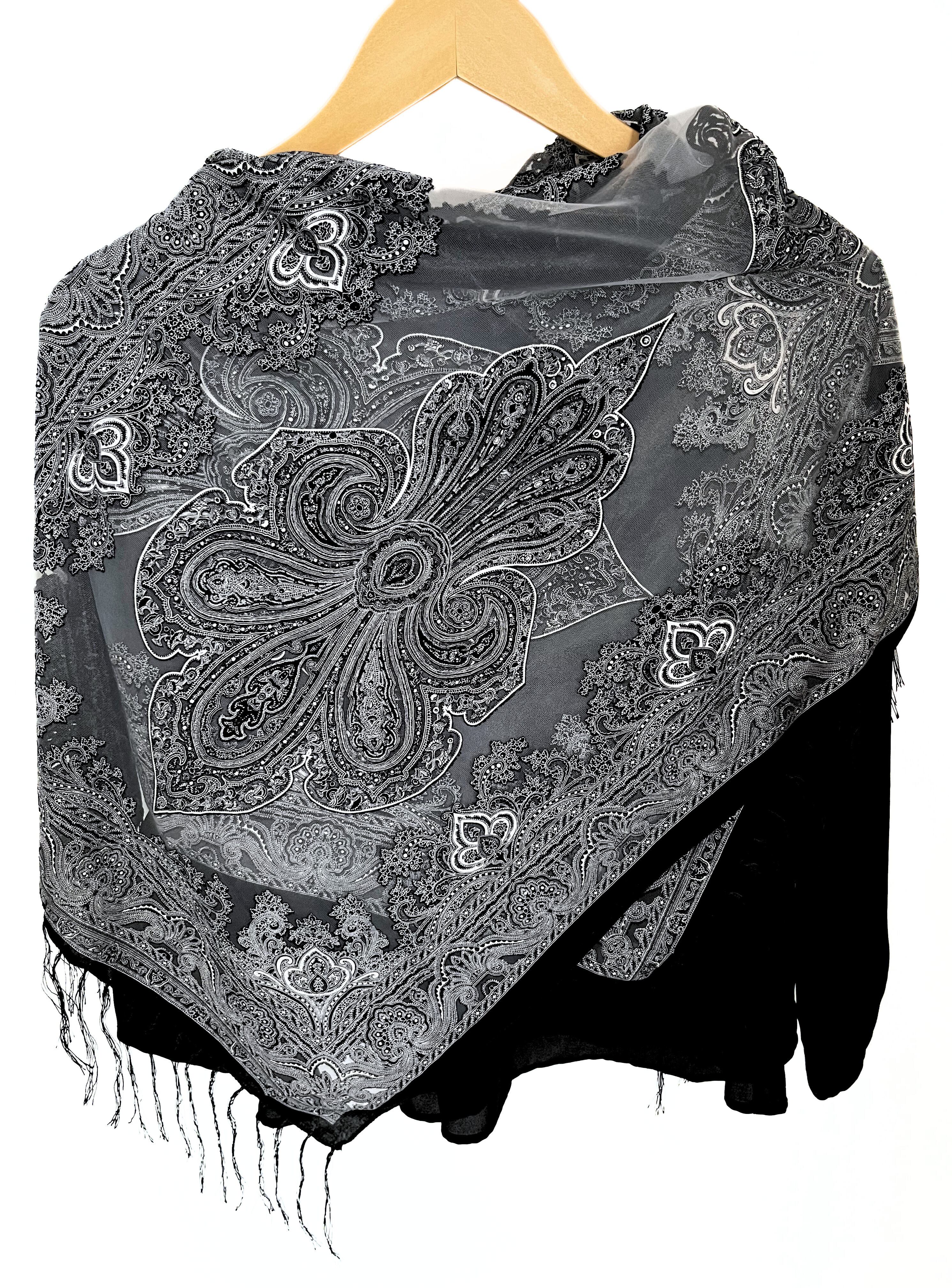 夏は1枚で。冬は厚手の無地ストールと重ね着けしても素敵です。