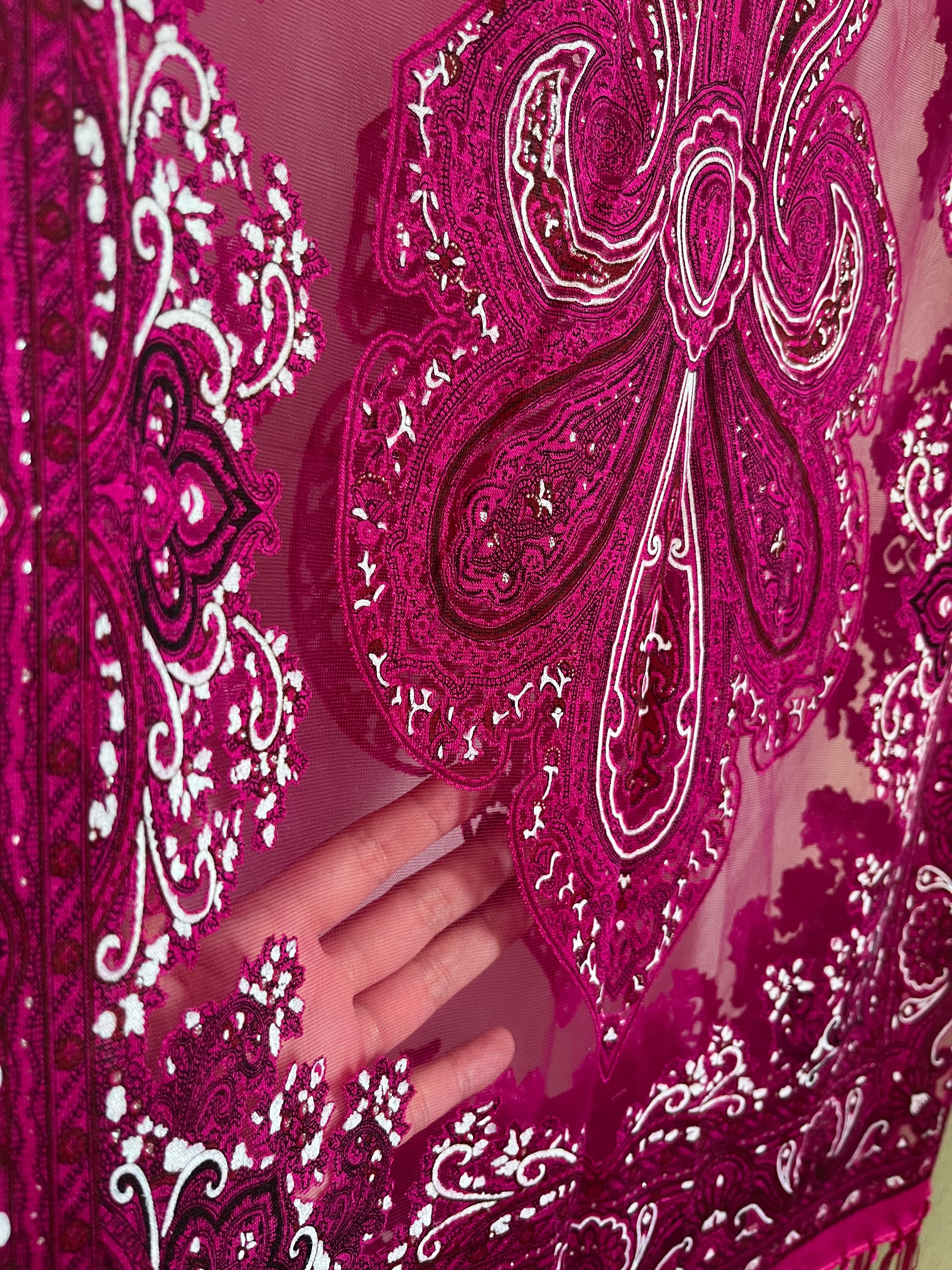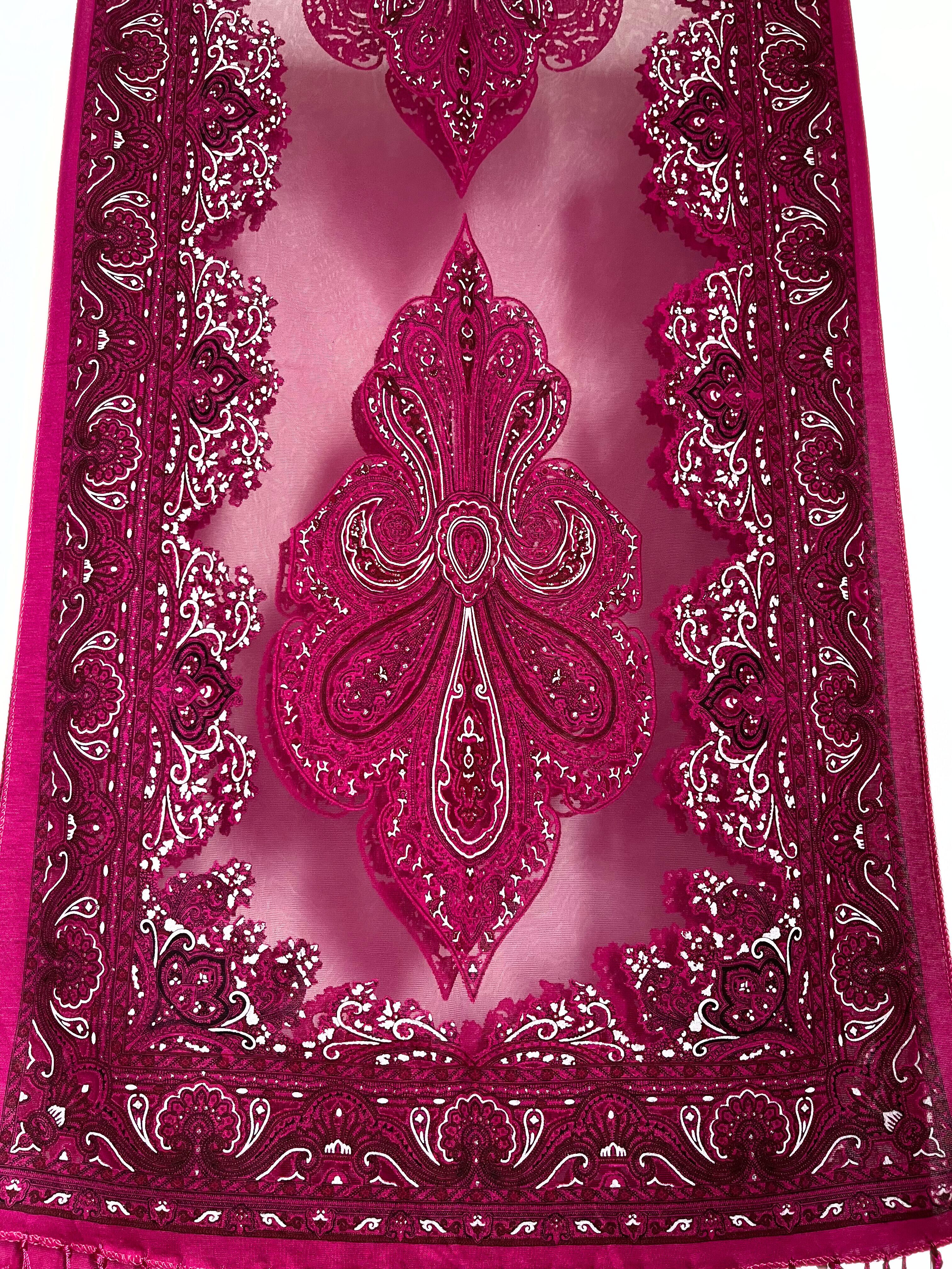 レース部分もピンクで透け、美しく綺麗なストール。
