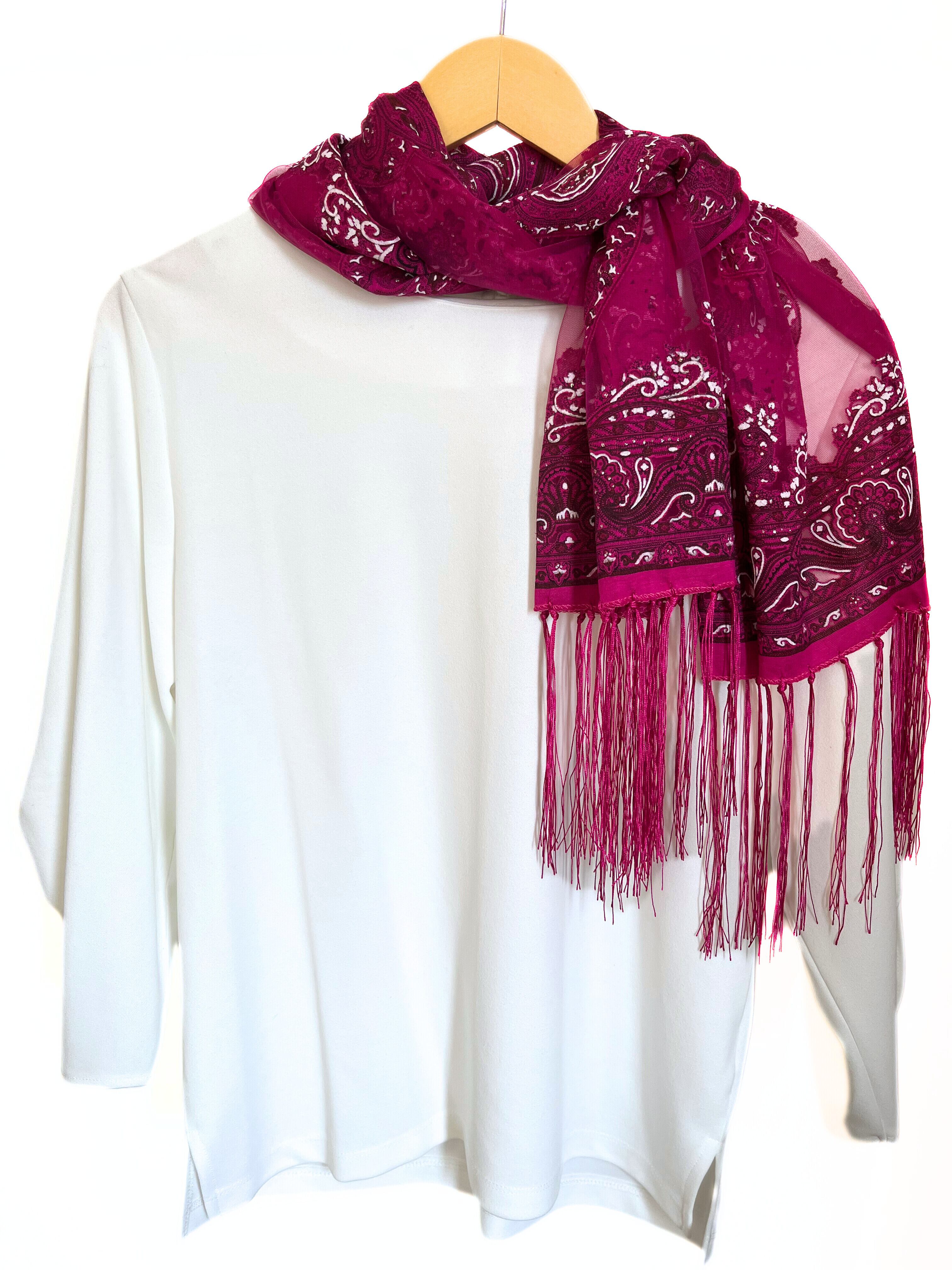 夏は1枚で。冬は厚手の無地ストールと重ね着けしても素敵です。