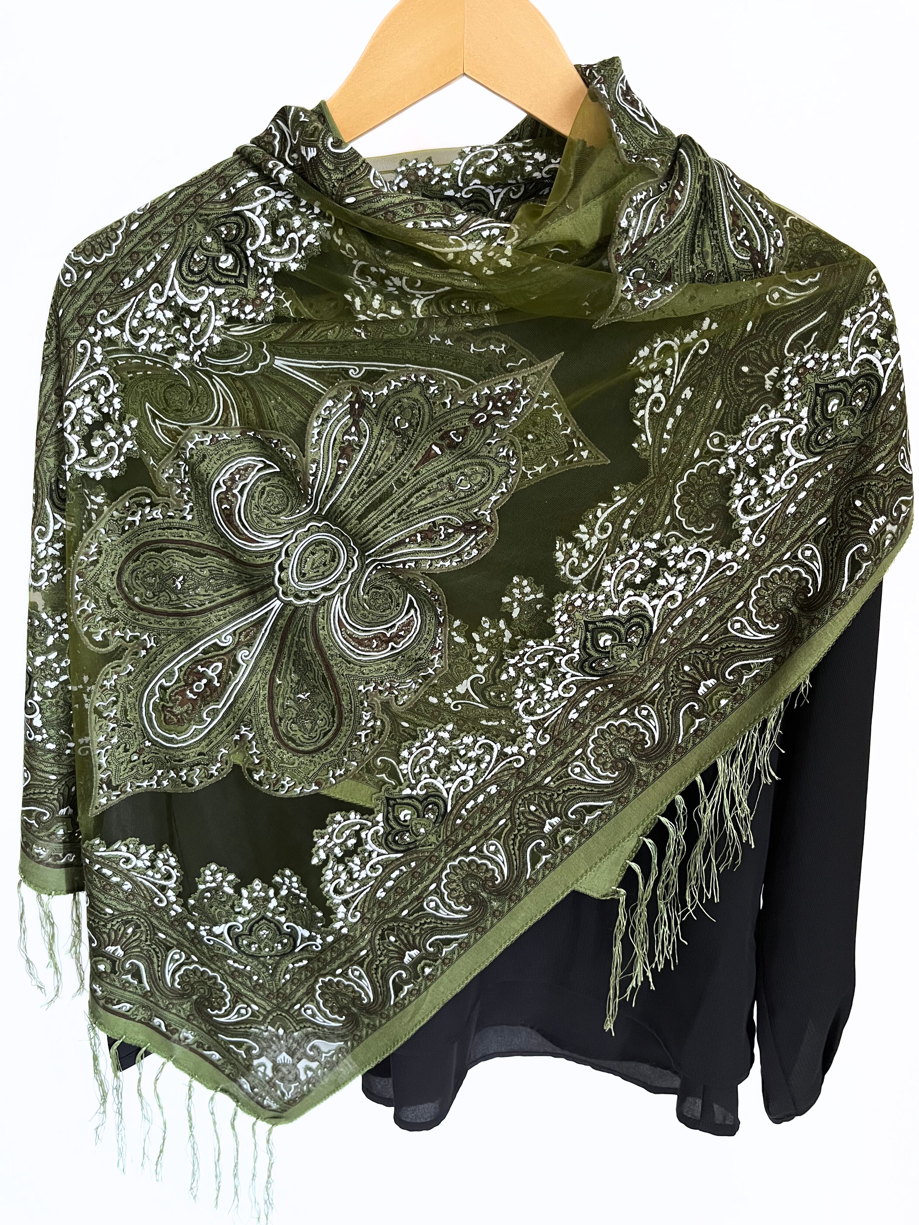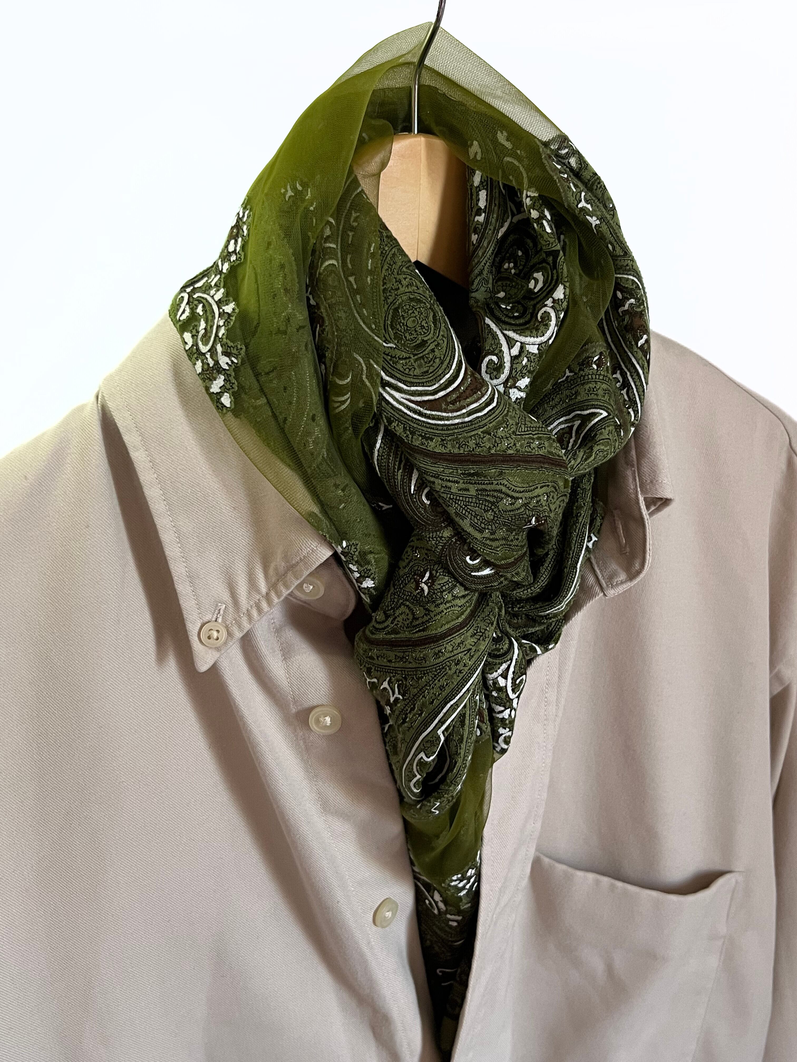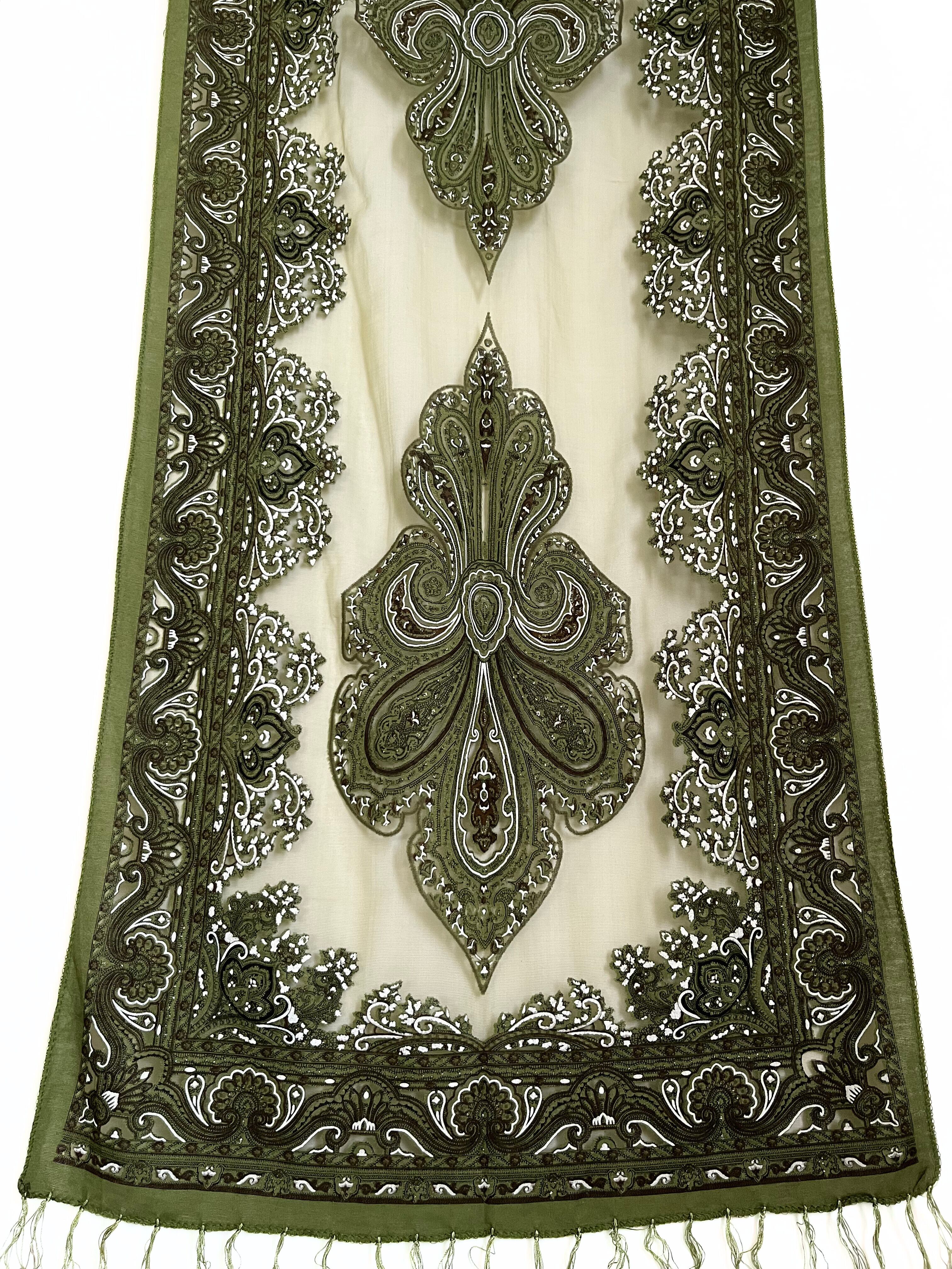 レース部分もカーキ色で透け、美しく綺麗なストール。