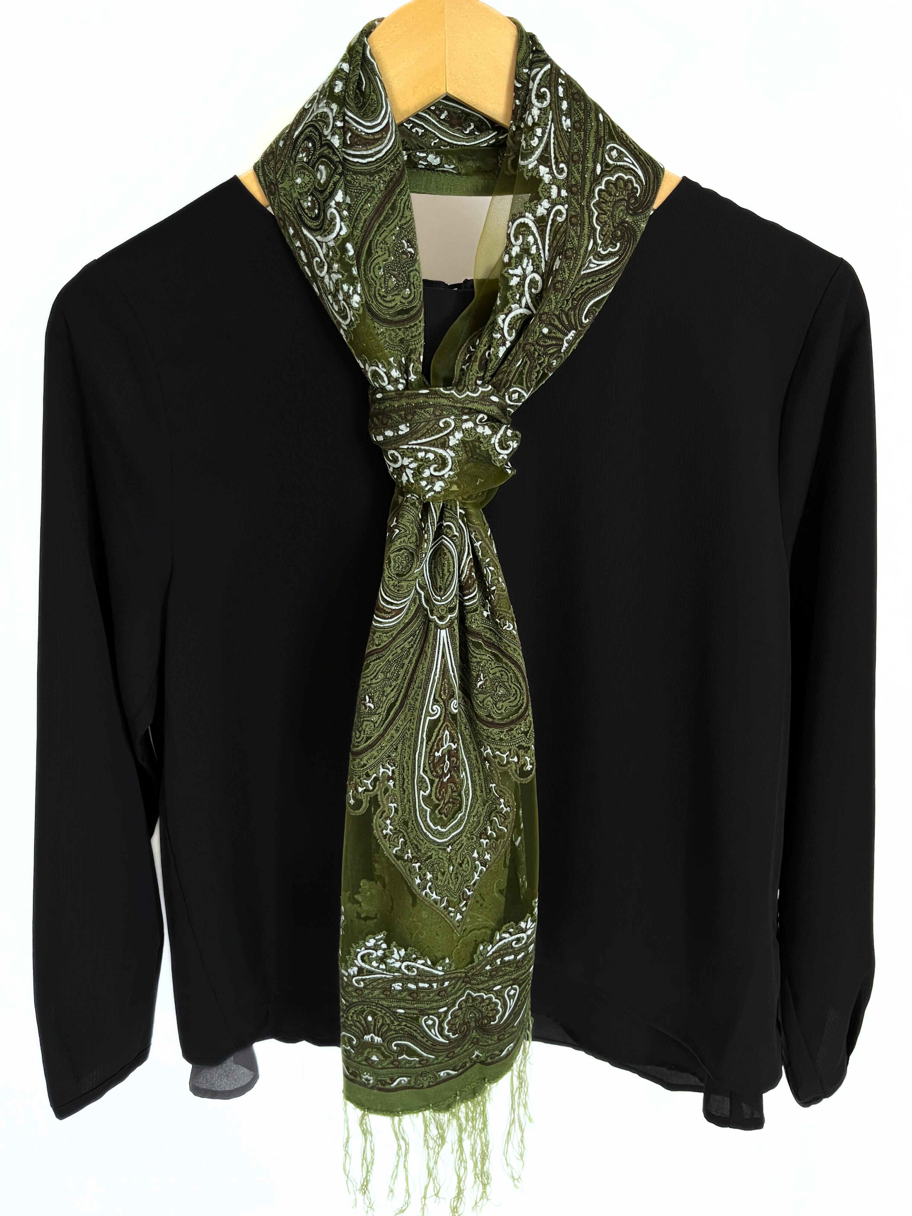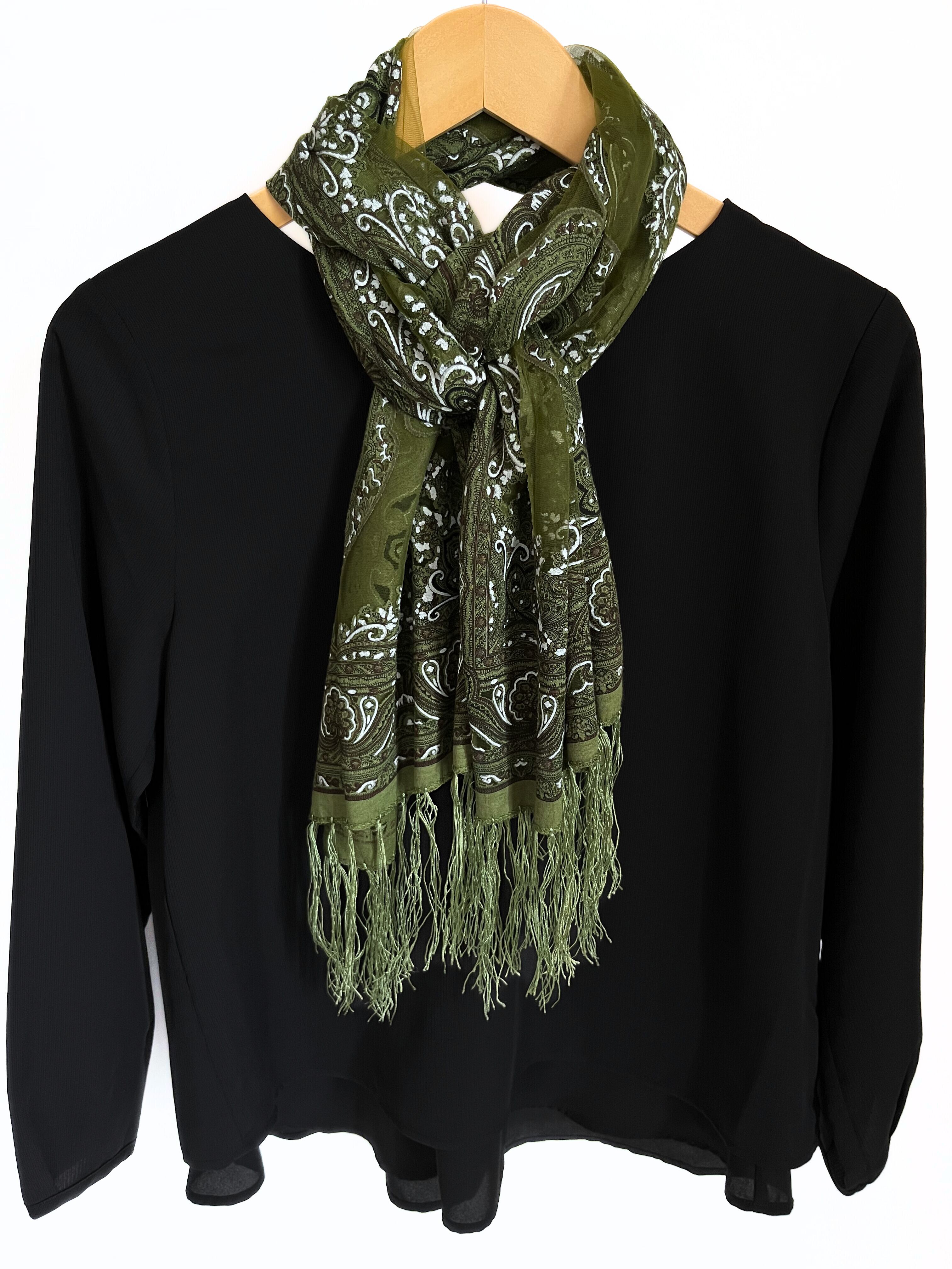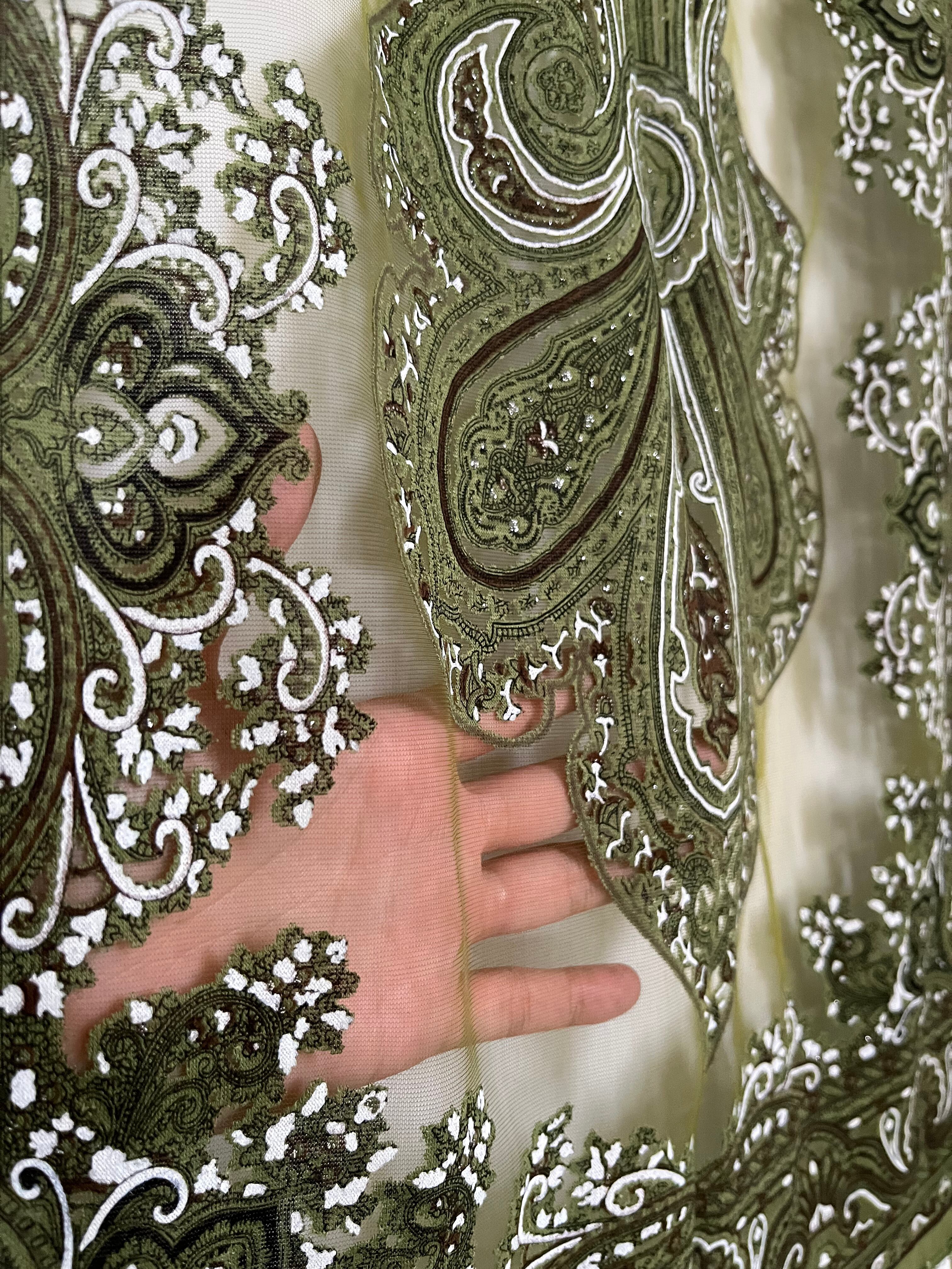 レース部分もカーキ色で透け、美しく綺麗なストール。