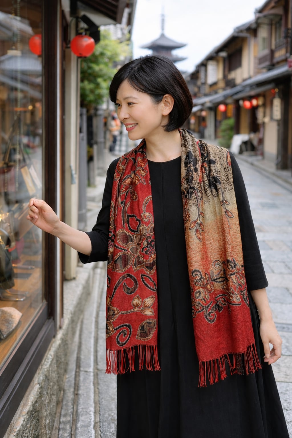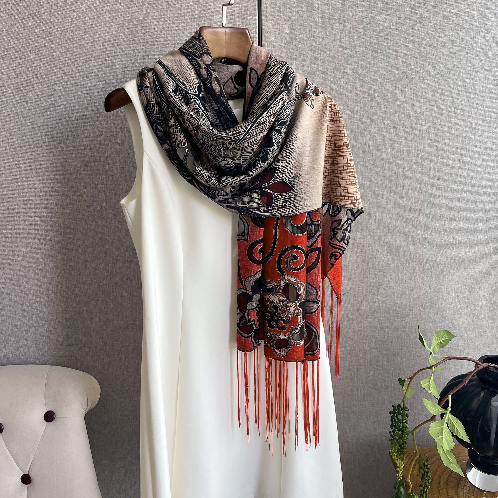 無地のストールに重ね付けしても綺麗に見えます。