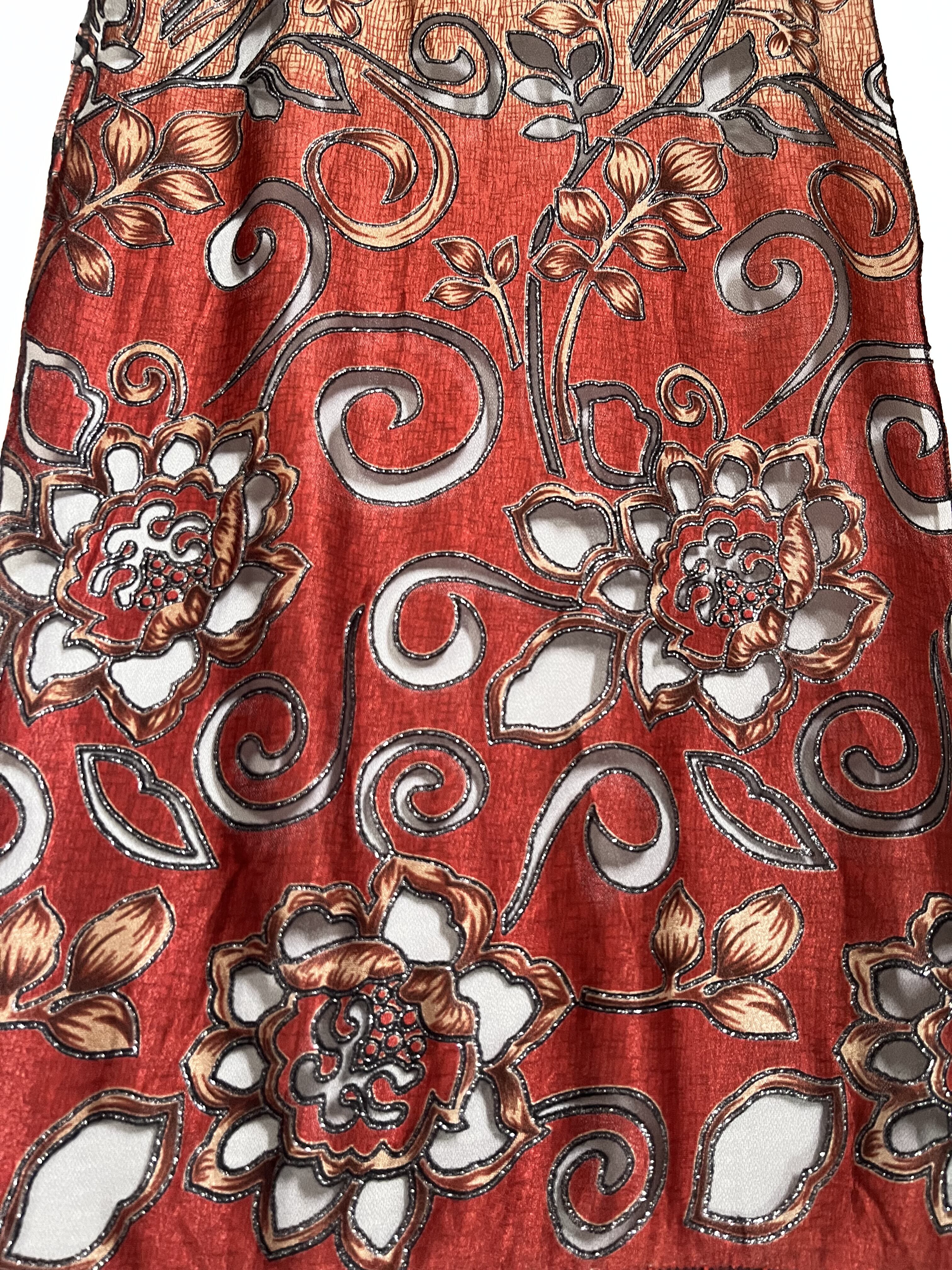 花や葉の部分が黒色のレースで透けており、柄の線にシルバーのラメ。