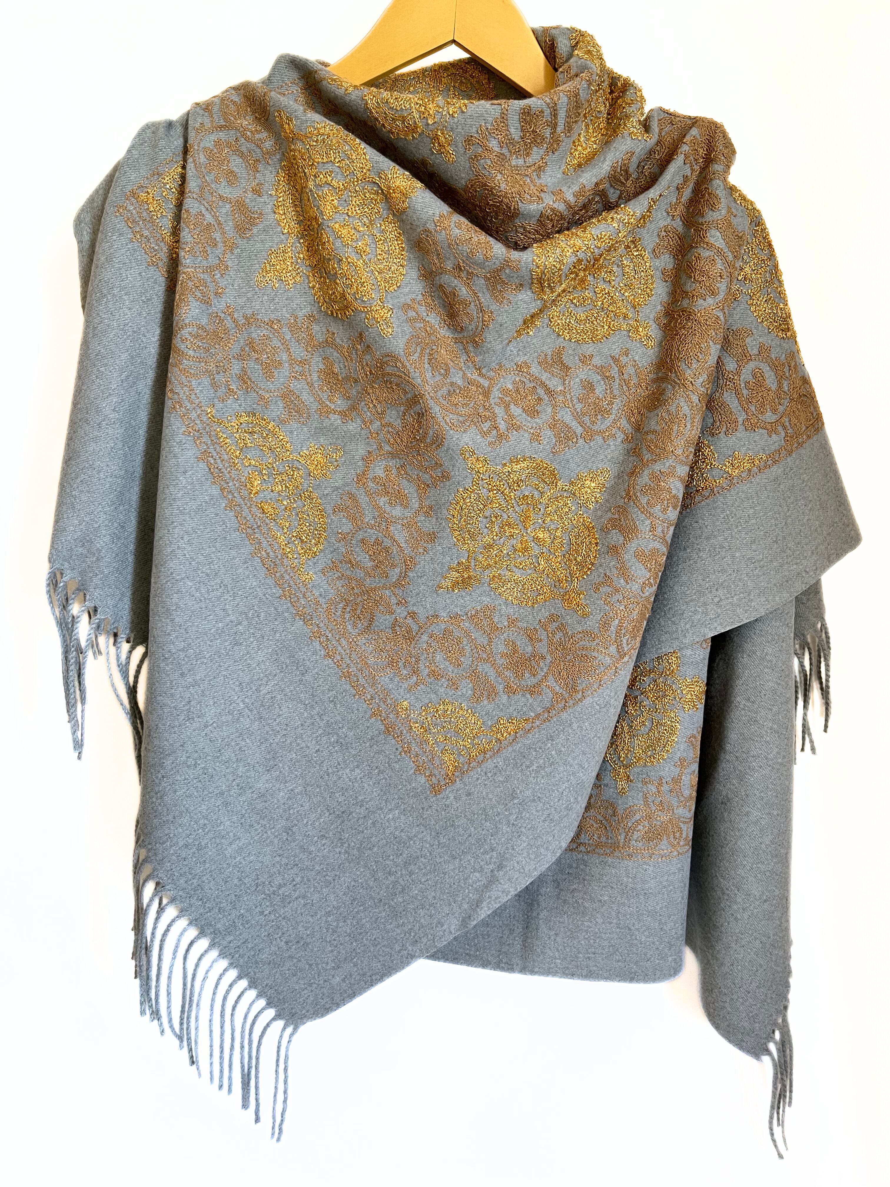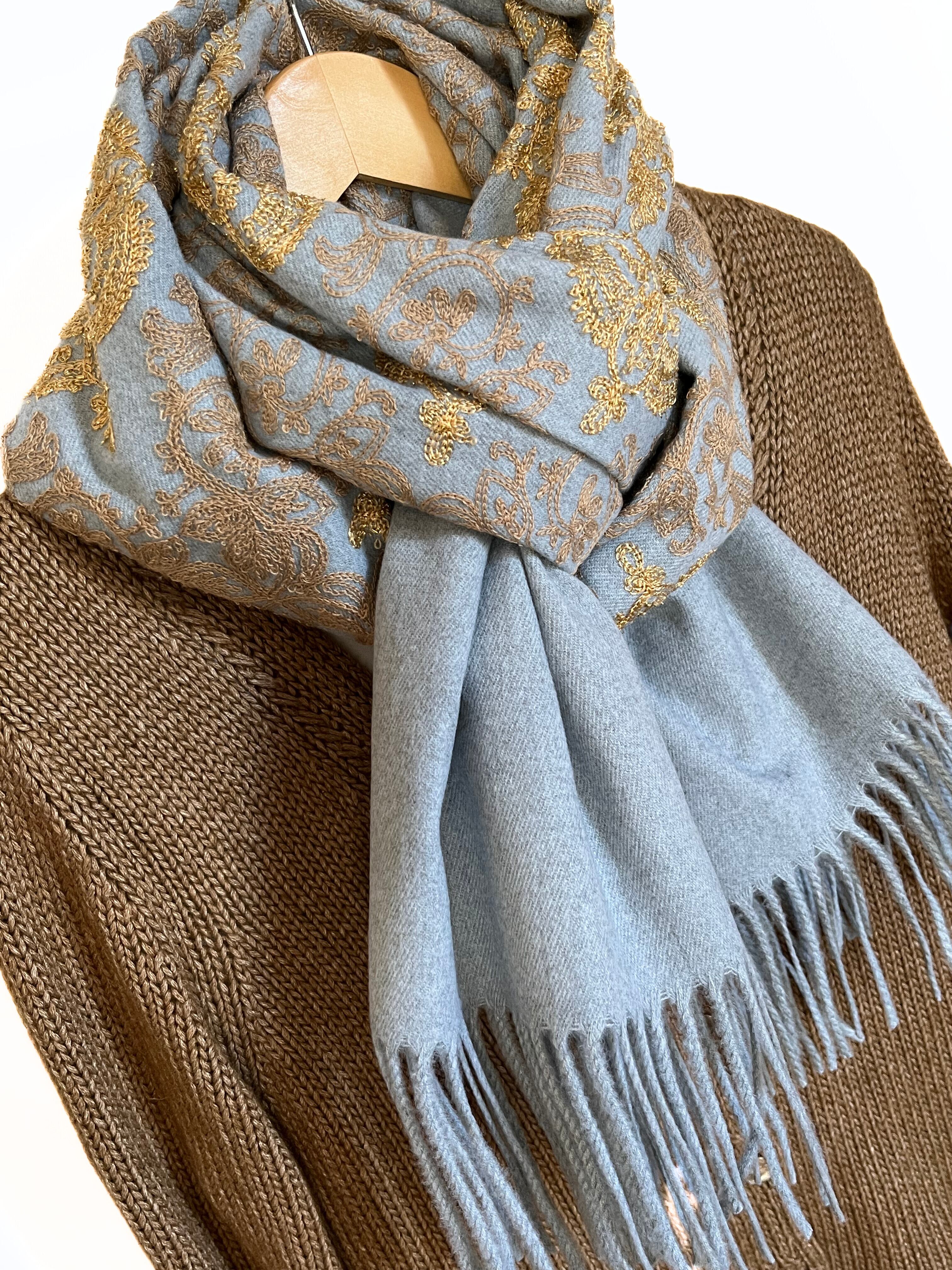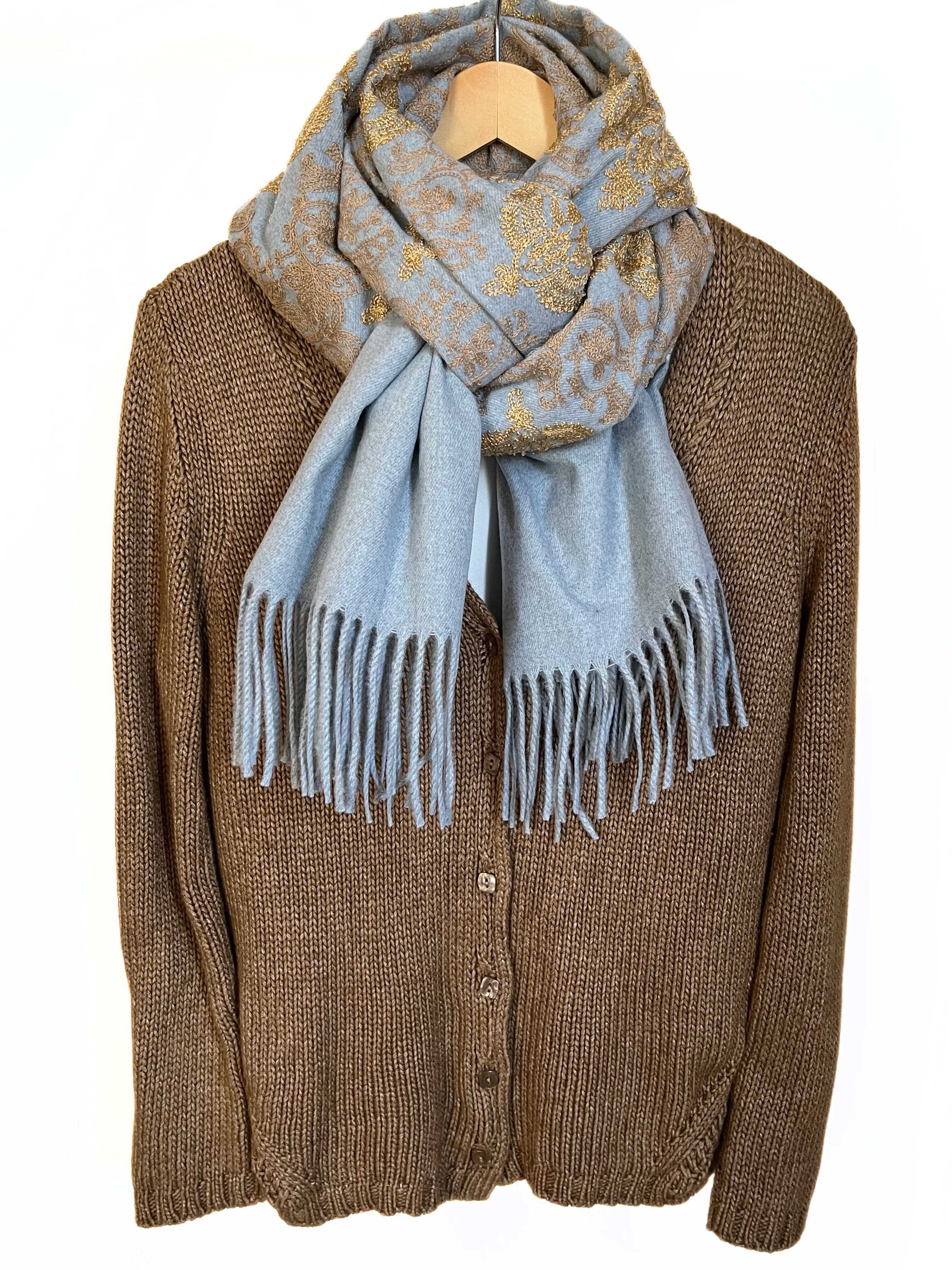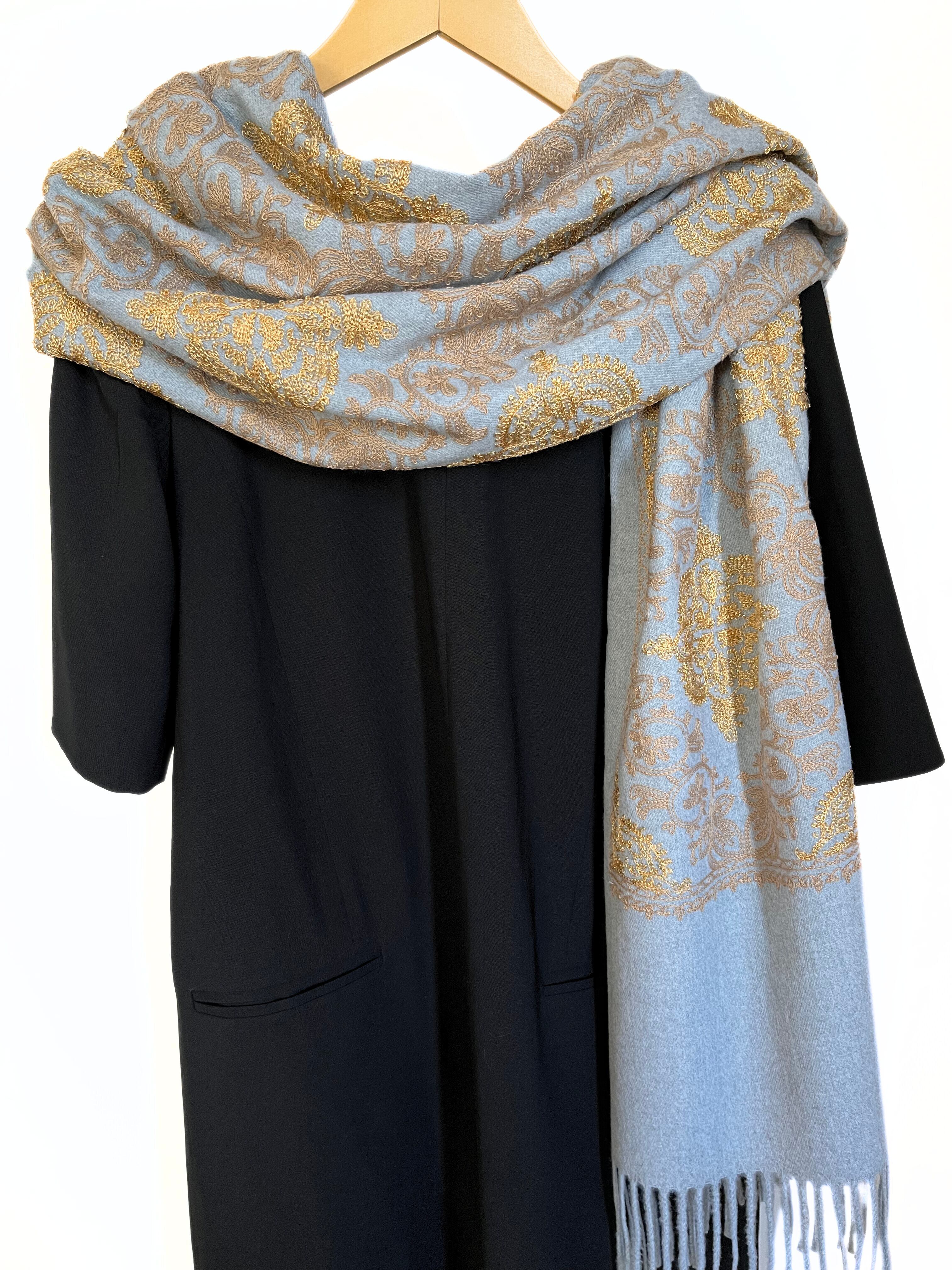 厚手で大判なので、首や肩に巻いたり膝掛けに使うのはもちろん、インテリアのソファーや椅子等に広げて掛けると、お部屋が一段とエレガントに。