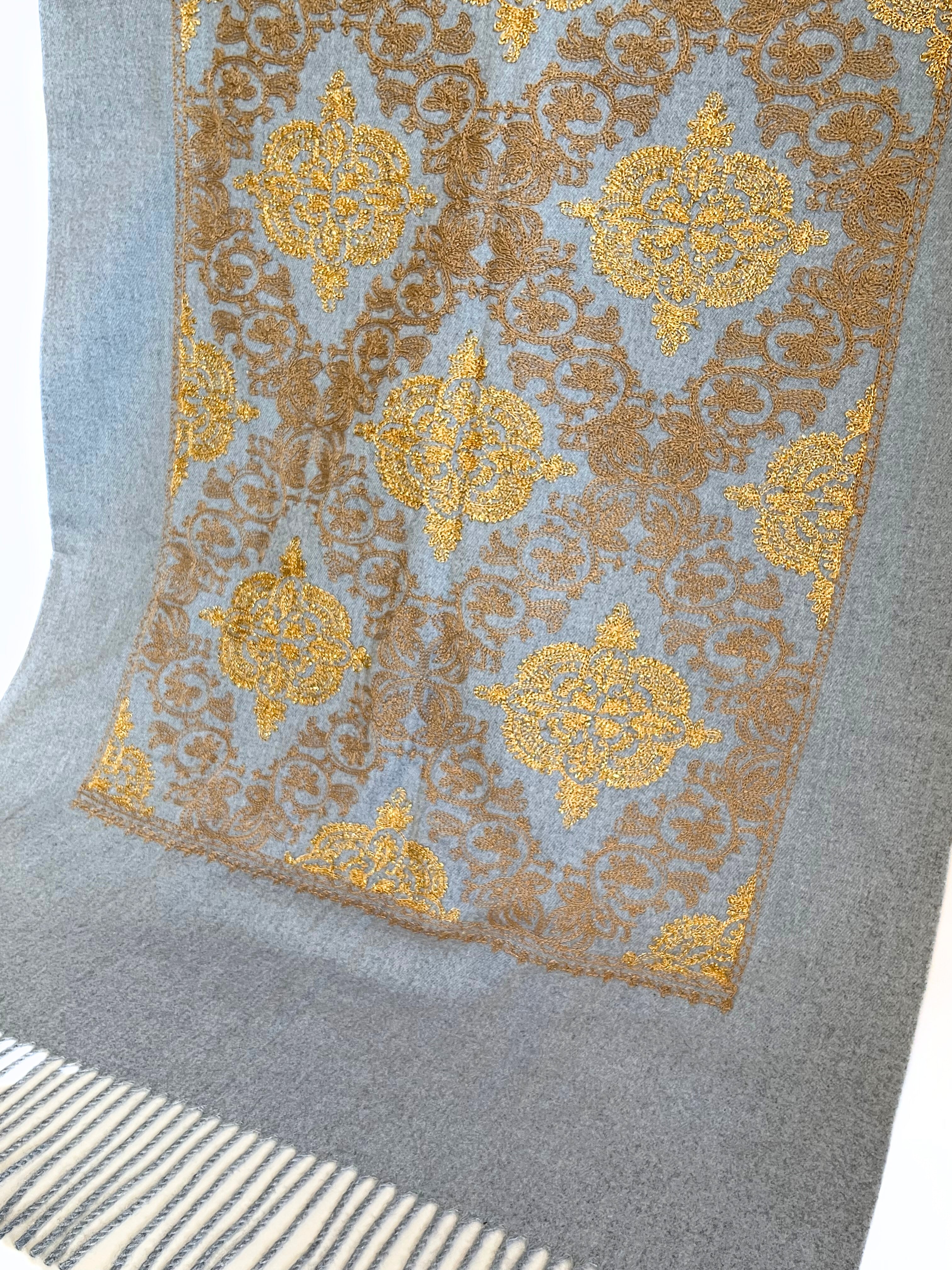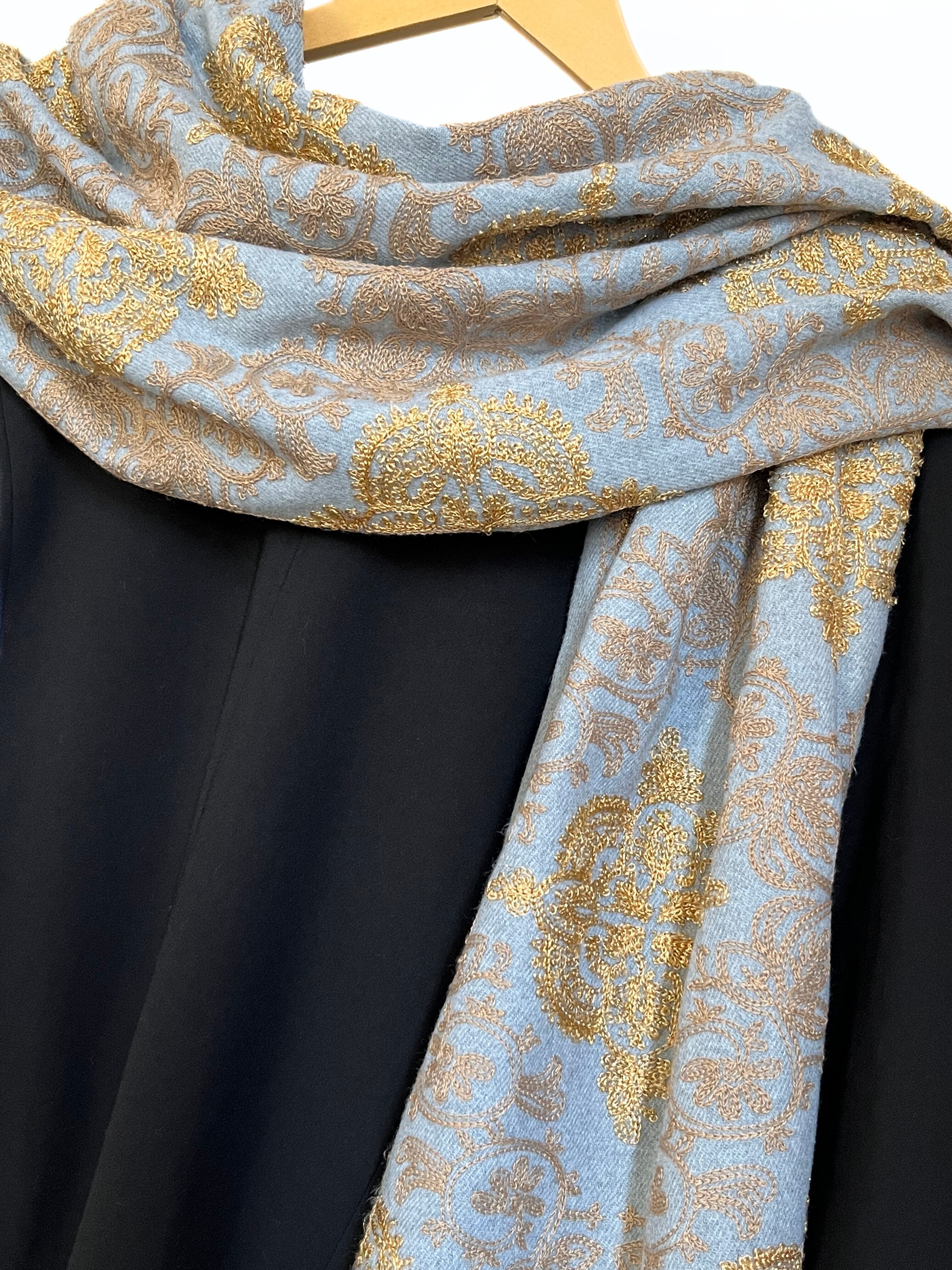 ゴールドとベージュの刺繍が施され、刺繍糸にラメが入っているので綺麗に品よく魅せてくれます。