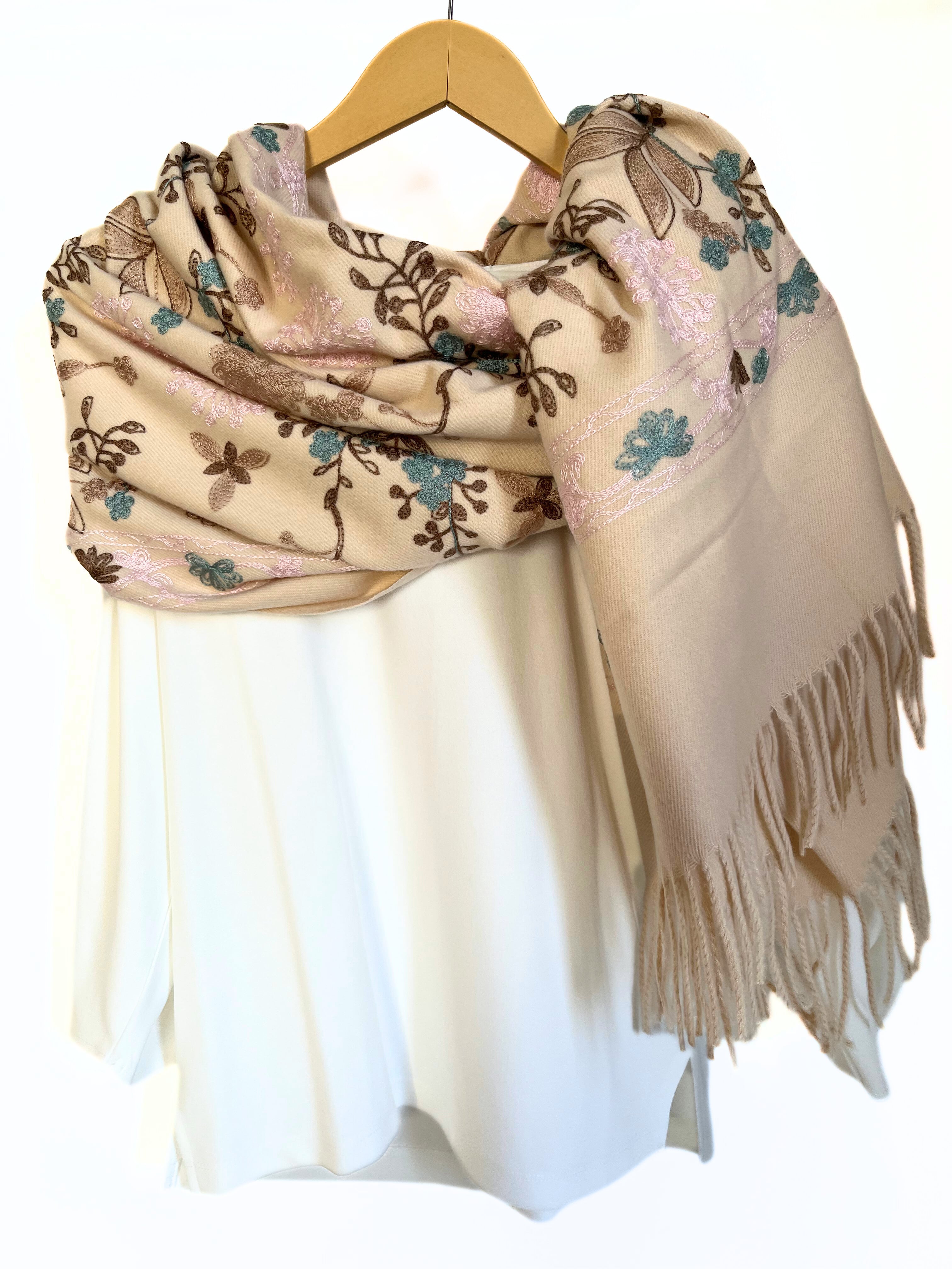 首や肩に巻いたり膝掛けに使うのはもちろん、インテリアのソファーや椅子等に広げて掛けると、お部屋が一段と華やかに。