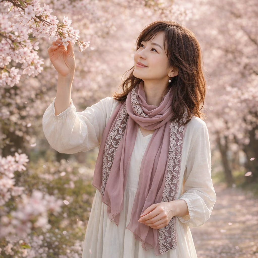 葉の部分がレースになっており、品のあるストールです。