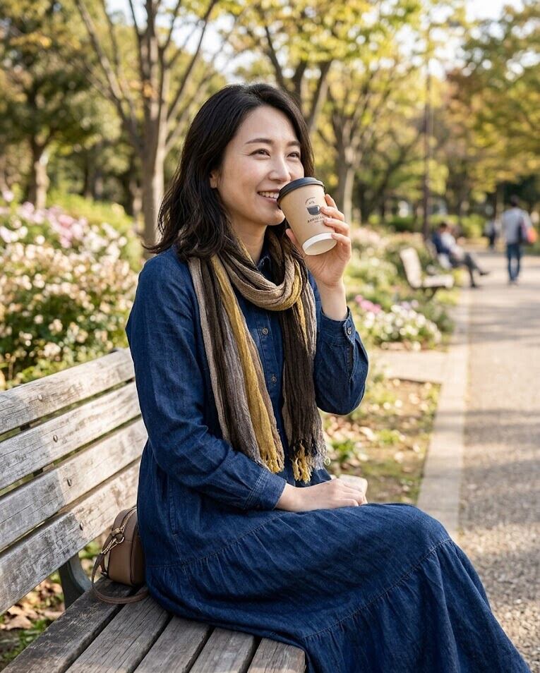 落ち着いたくすんだ色の組み合わせなので、派手すぎずコーディネートをまとめてくれます。