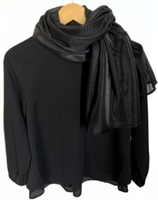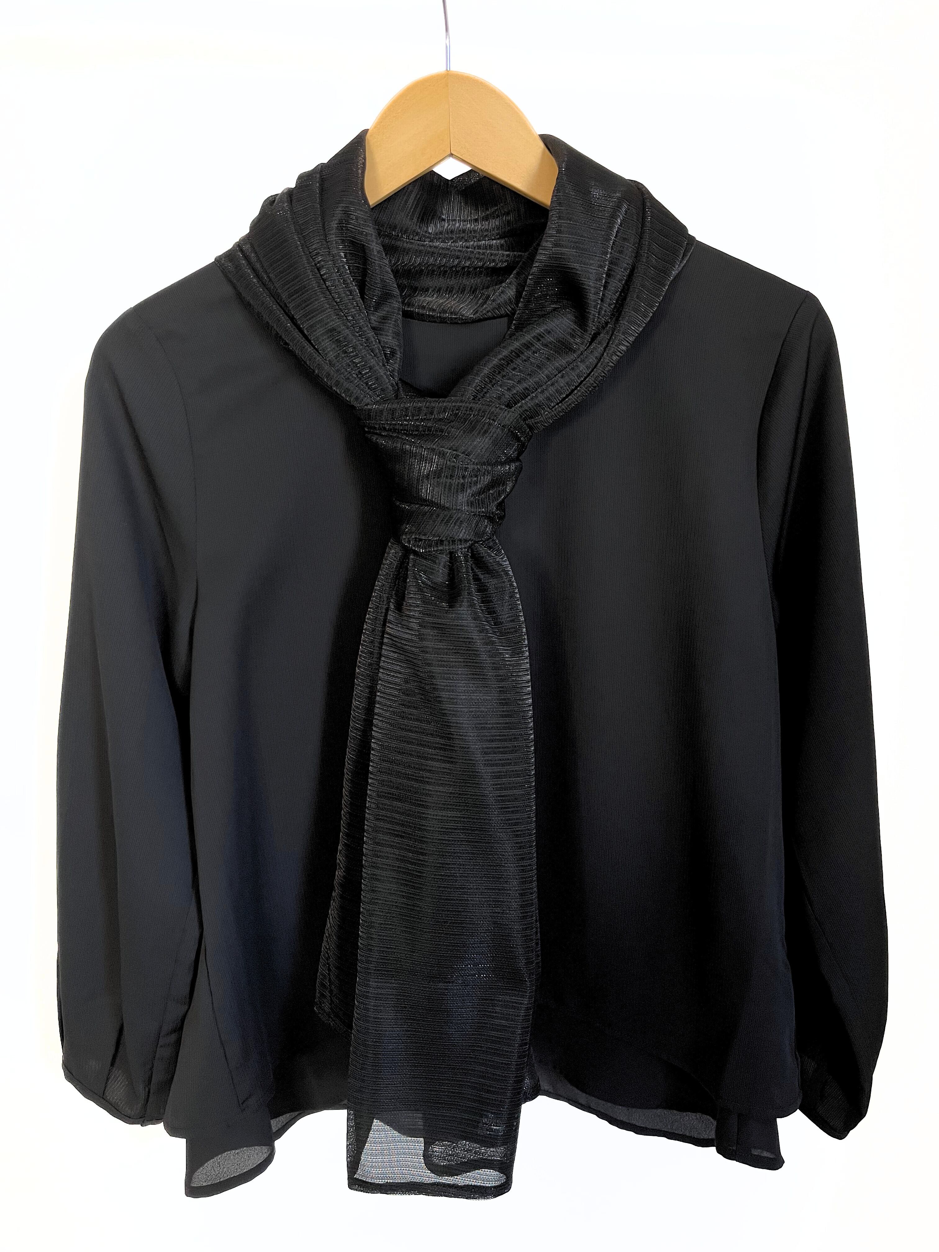 光沢がありストライプの凹凸生地なので、地味すぎずエレガントな雰囲気に。