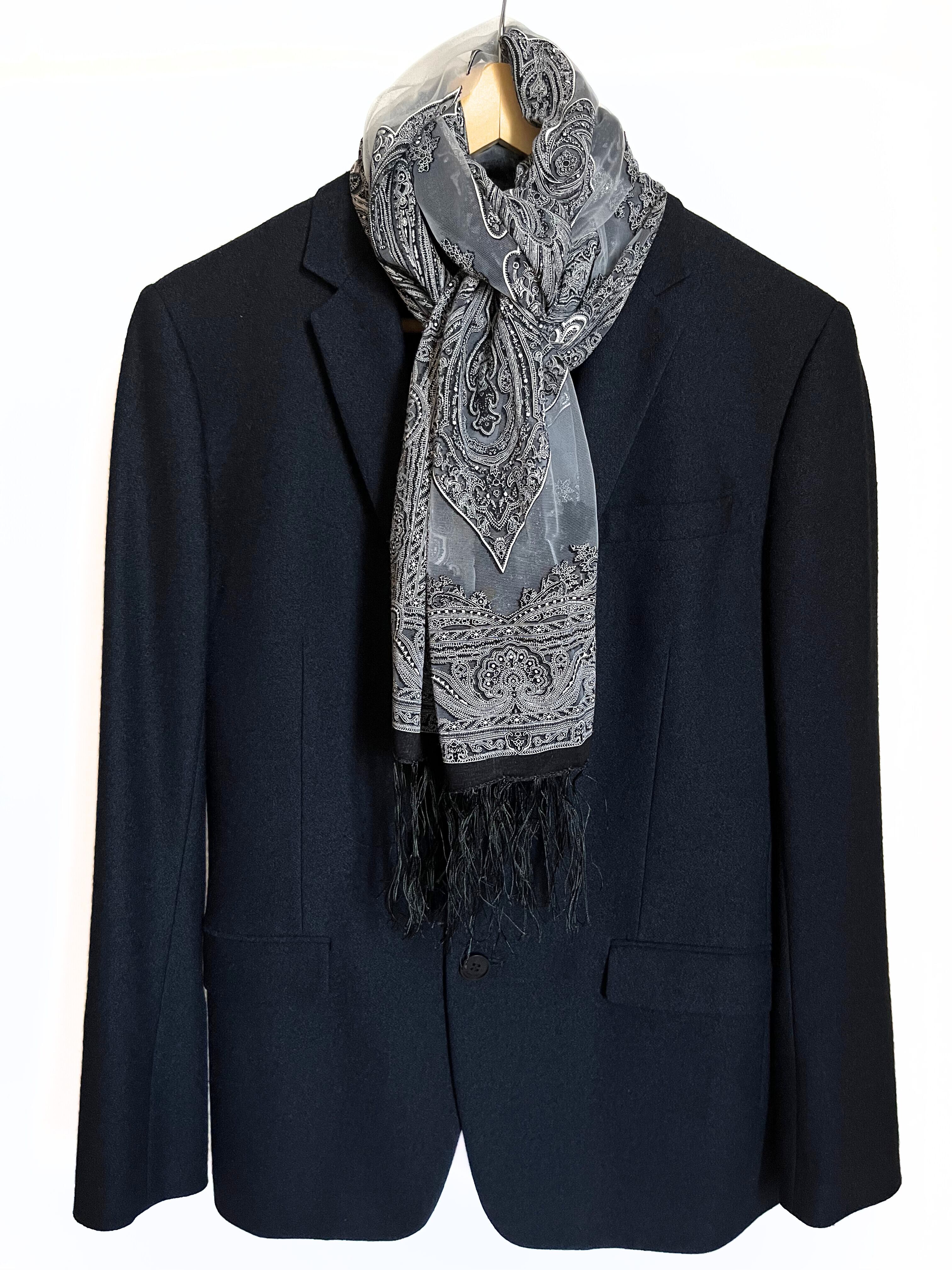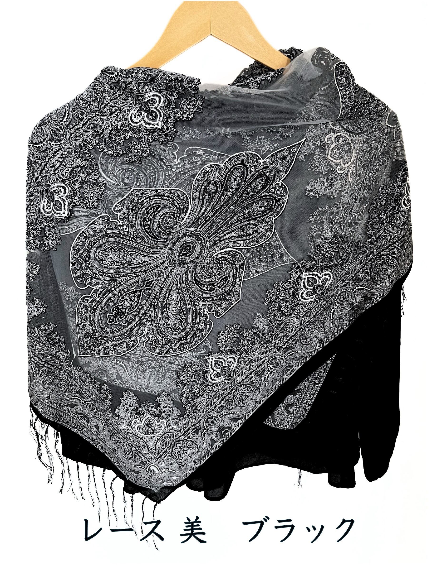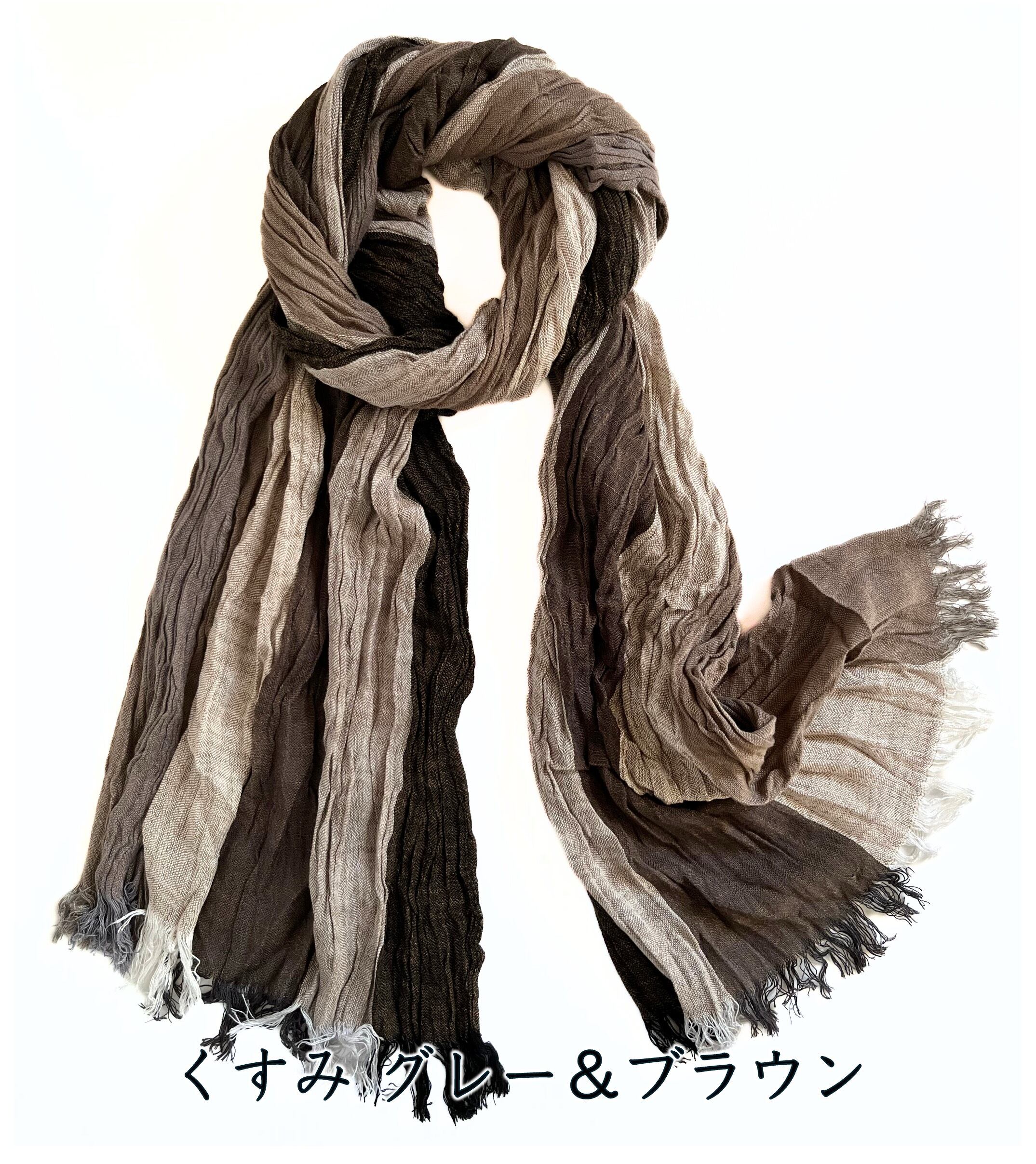 夏は1枚で。冬は厚手の無地ストールと重ね着けしても素敵です。
