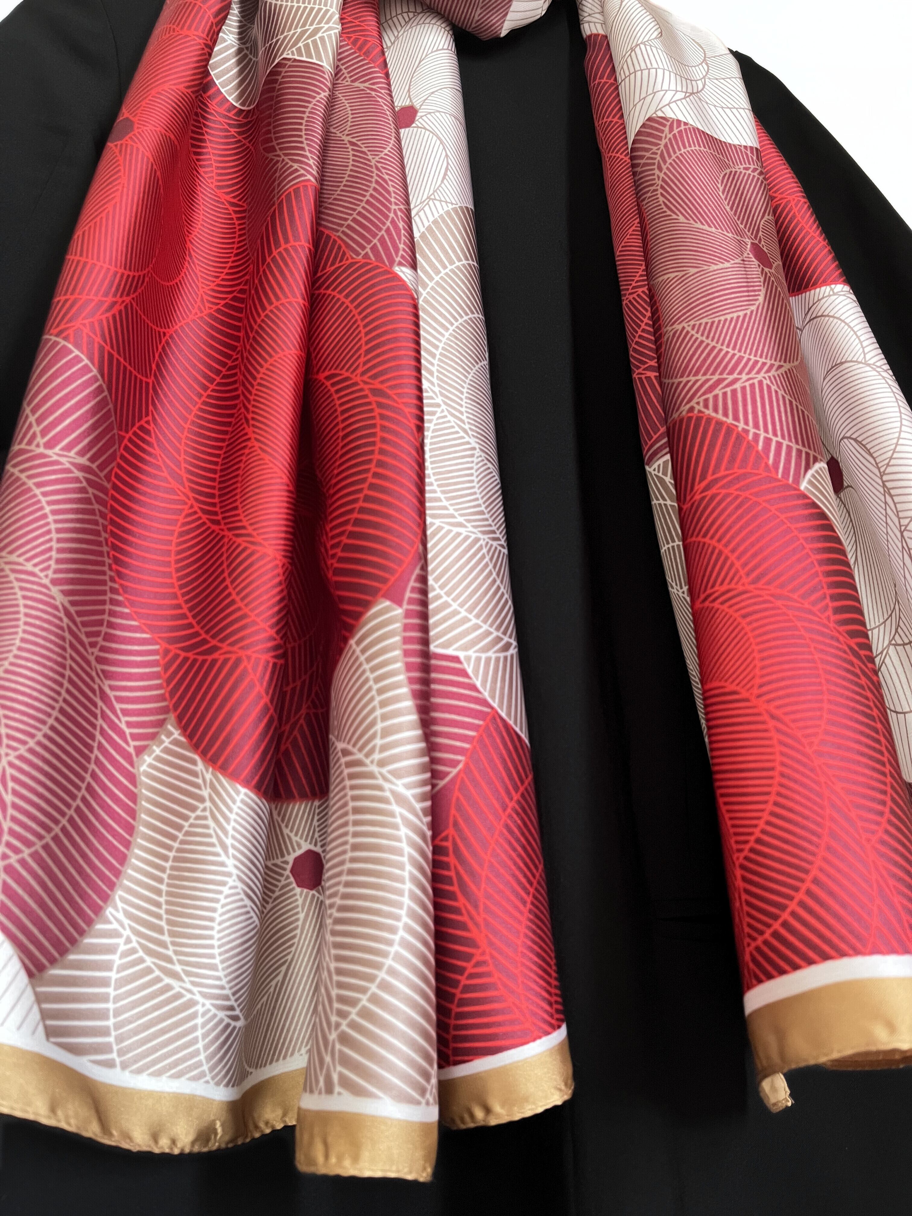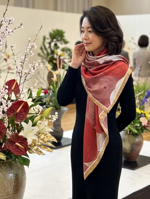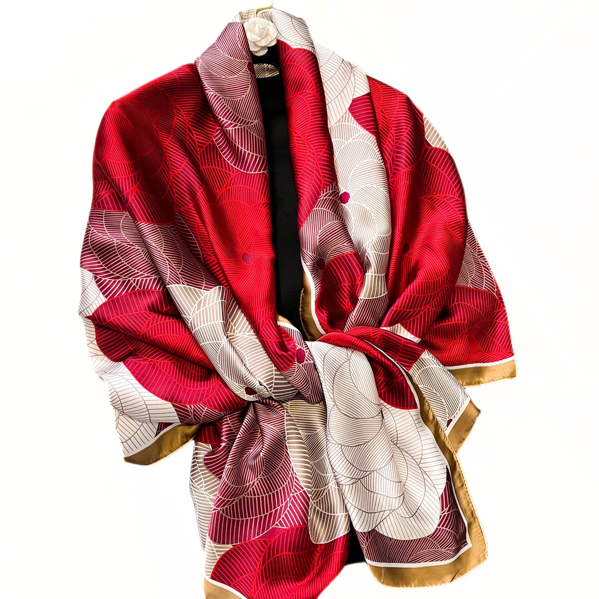 紅白、そして金の花が咲き誇る豪華なストール。